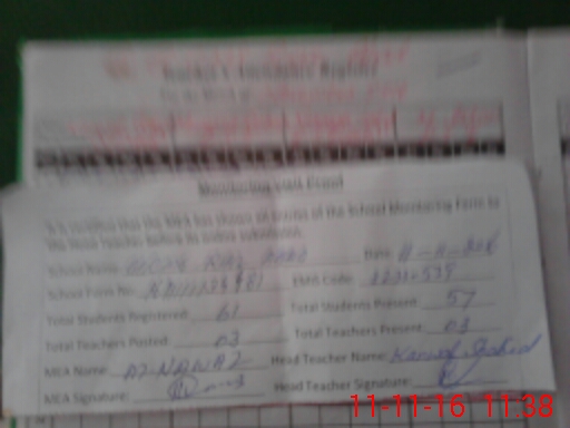 | Attendance Register | Head Teacher | MEA with School | Visit Proof |