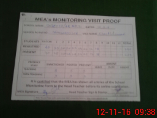 | Monitoring Date: 12-11-2016 | Start Time: 12-11-2016 09:07 AM | End Time: 12-11-2016 09:42 AM | Name of MEA: Kh**** Mu**** (S**** 05**** | |