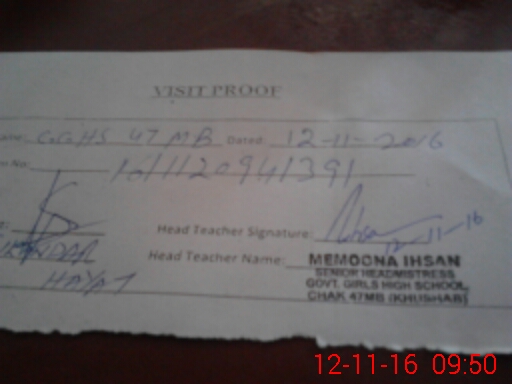 | EMIS Code: 38210925 | Name of School: GGHS CHAK NO 47 MB | |||