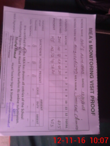 | Certified that this School was Inspected by the Undersigned MEA/DMO Today and the Information Stated Above is as Per Record. | |||||