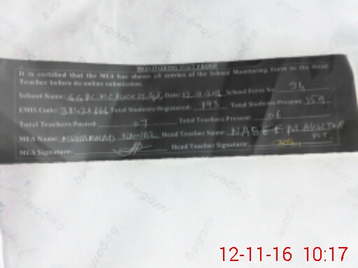 | Certified that this School was Inspected by the Undersigned MEA/DMO Today and the Information Stated Above is as Per Record. | |||||