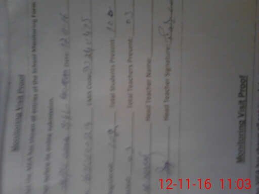 | Attendance Register | Head Teacher | MEA with School | Visit Proof |