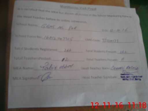 | Certified that this School was Inspected by the Undersigned MEA/DMO Today and the Information Stated Above is as Per Record. | |||||