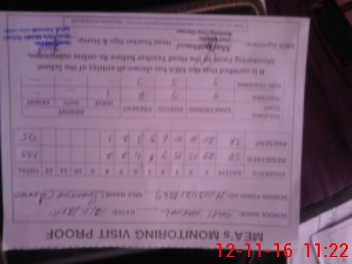 | Attendance Register | Head Teacher | MEA with School | Visit Proof |