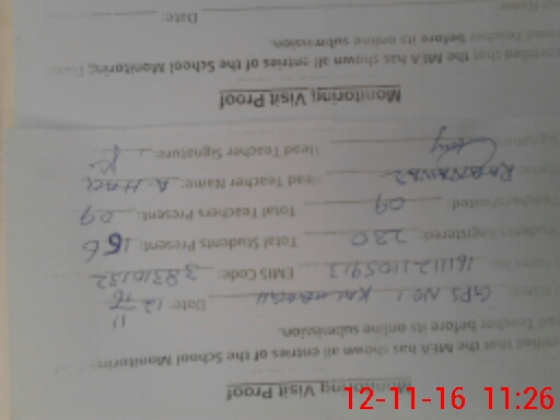 | Monitoring Date: 12-11-2016 | Start Time: 12-11-2016 10:52 AM | End Time: 12-11-2016 11:29 AM | Name of MEA: Kh**** Mu**** Kh**** (R**** | |