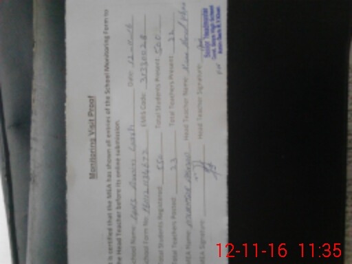 | Attendance Register | Head Teacher | MEA with School | Visit Proof |