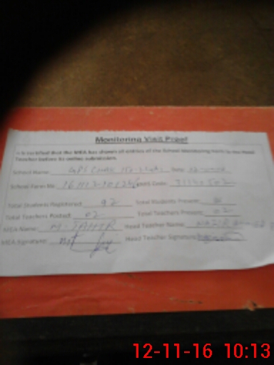 | Attendance Register | Head Teacher | MEA with School | Visit Proof |