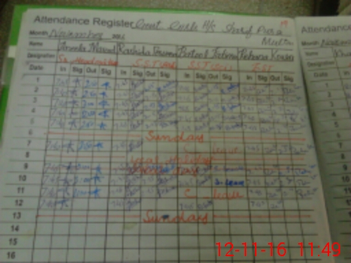 | CNIC | Full Name | Designation | R/C | Absence During Last Calender Month |