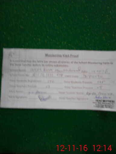 | Monitoring Date: 12-11-2016 | Start Time: 12-11-2016 11:30 AM | End Time: 12-11-2016 12:17 PM | Name of MEA: Mu**** As**** -KP**** | |