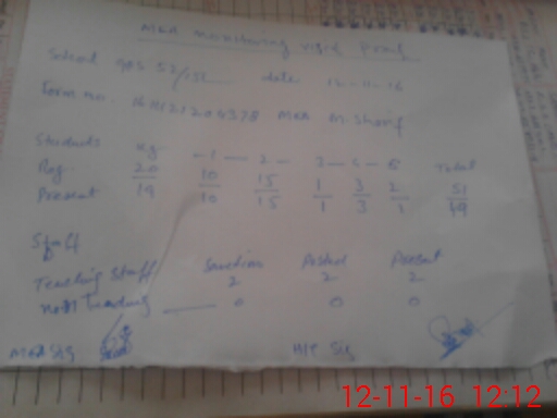| Monitoring Date: 12-11-2016 | Start Time: 12-11-2016 11:45 AM | End Time: 12-11-2016 12:13 PM | Name of MEA: MU**** SH**** | |