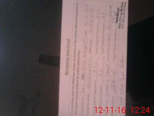 | Monitoring Date: 12-11-2016 | Start Time: 12-11-2016 11:39 AM | End Time: 12-11-2016 12:29 PM | Name of MEA: Mu**** Ha**** Ta**** | |