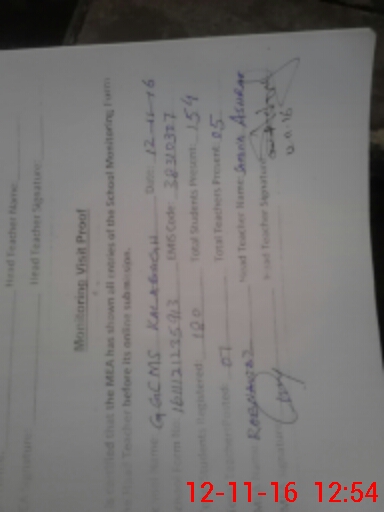 | Monitoring Date: 12-11-2016 | Start Time: 12-11-2016 12:18 PM | End Time: 12-11-2016 12:54 PM | Name of MEA: Kh**** Mu**** Kh**** (R**** | |