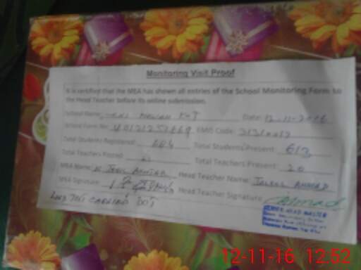 | Certified that this School was Inspected by the Undersigned MEA/DMO Today and the Information Stated Above is as Per Record. | |||||