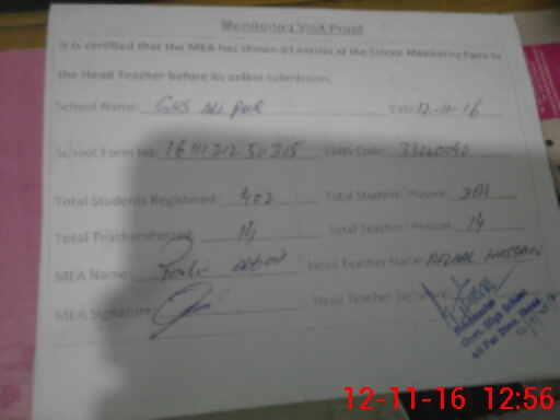 | Certified that this School was Inspected by the Undersigned MEA/DMO Today and the Information Stated Above is as Per Record. | |||||