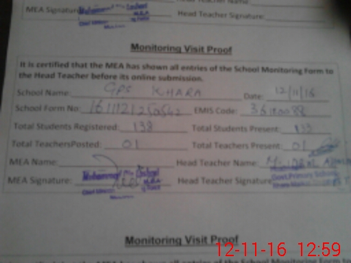 | EMIS Code: 36120088 | Name of School: GPS KHARA MOZA KHARA P/O CHAK SARAY | |||