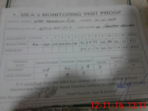 | Attendance Register | Head Teacher | MEA with School | Visit Proof |