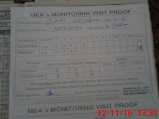 | Attendance Register | Head Teacher | MEA with School | Visit Proof |