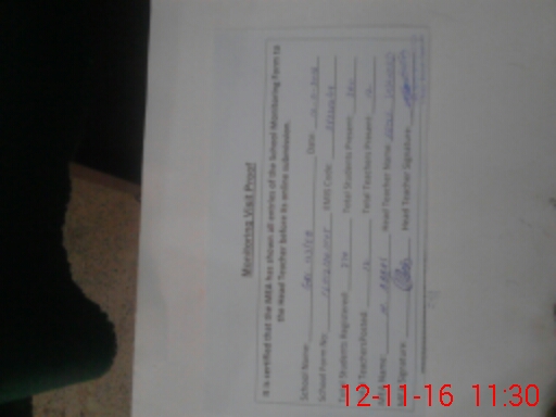 | Monitoring Date: 12-11-2016 | Start Time: 12-11-2016 10:01 AM | End Time: 12-11-2016 11:30 AM | Name of MEA: Mu**** Ab**** | |