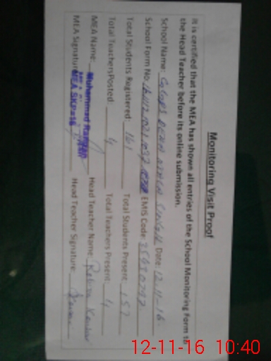 | Certified that this School was Inspected by the Undersigned MEA/DMO Today and the Information Stated Above is as Per Record. | |||||