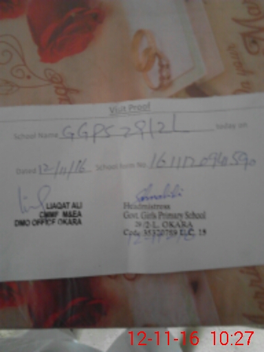 | District: OKARA | Tehsil: OKARA | Markaz: KARMAN WALA - FEMALE | Level: Primary | |