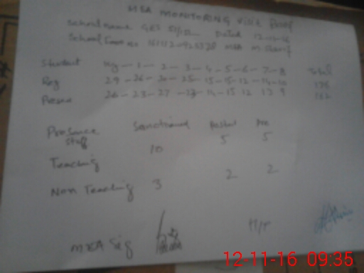 | Monitoring Date: 12-11-2016 | Start Time: 12-11-2016 09:00 AM | End Time: 12-11-2016 09:37 AM | Name of MEA: MU**** SH**** | |