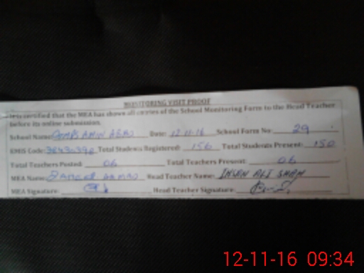 | Attendance Register | Head Teacher | MEA with School | Visit Proof |