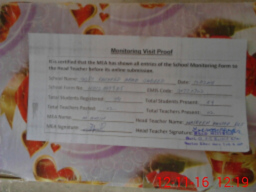 | Certified that this School was Inspected by the Undersigned MEA/DMO Today and the Information Stated Above is as Per Record. | |||||