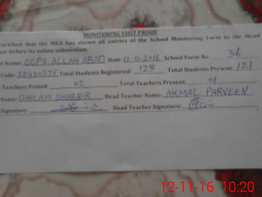 | EMIS Code: 38430375 | Name of School: GGPS ALLAH ABAD | |||