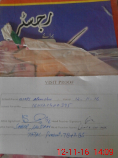 | Attendance Register | Head Teacher | MEA with School | Visit Proof |