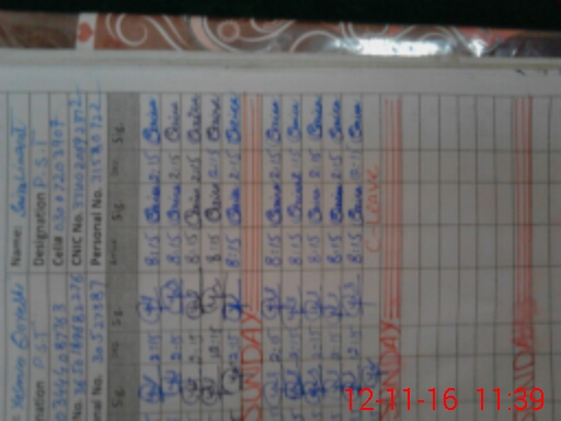 | CNIC | Full Name | Designation | R/C | Absence During Last Calender Month |