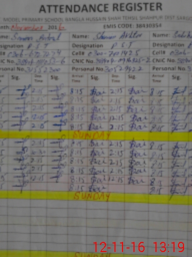 | CNIC | Full Name | Designation | R/C | Absence During Last Calender Month |