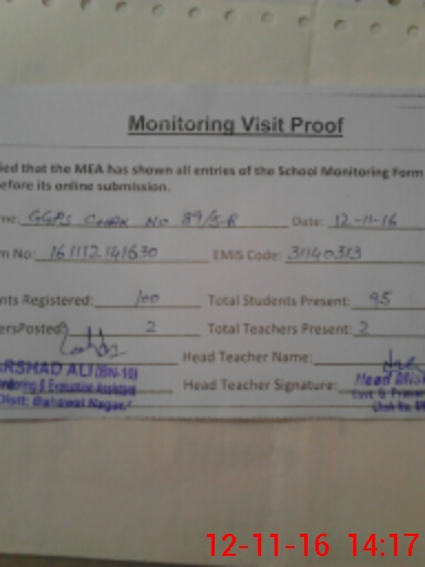 | EMIS Code: 31140313 | Name of School: GGPS CHAK NO 89/5-R | |||