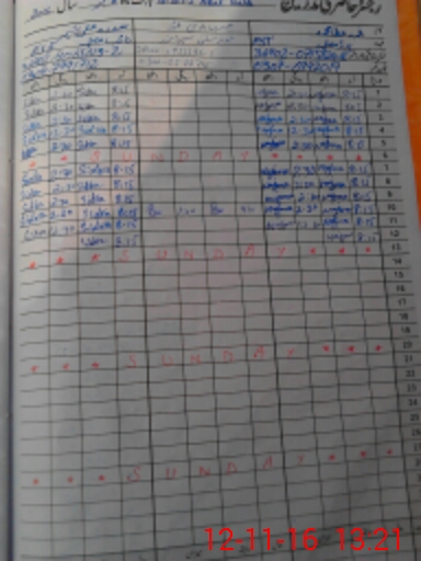 | CNIC | Full Name | Designation | R/C | Absence During Last Calender Month |