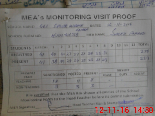 | Certified that this School was Inspected by the Undersigned MEA/DMO Today and the Information Stated Above is as Per Record. | |||||