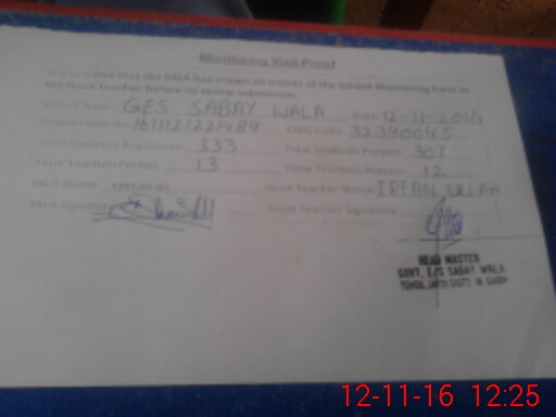 | EMIS Code: 32340045 | Name of School: GHS SABAY WALA | |||