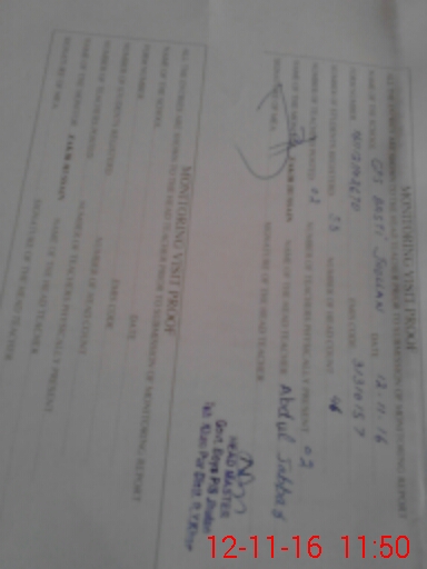 | Monitoring Date: 12-11-2016 | Start Time: 12-11-2016 11:02 AM | End Time: 12-11-2016 11:53 AM | Name of MEA: Za**** Hu**** | |