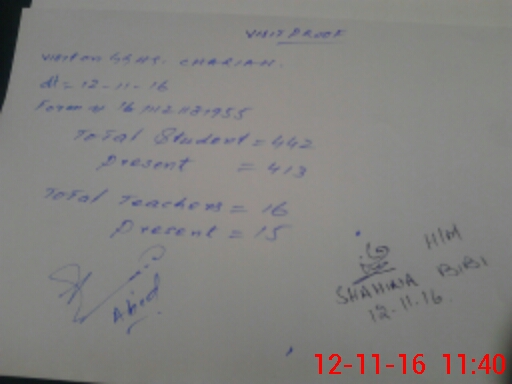 | Certified that this School was Inspected by the Undersigned MEA/DMO Today and the Information Stated Above is as Per Record. | |||||