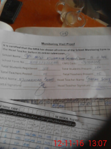 | Attendance Register | Head Teacher | MEA with School | Visit Proof |