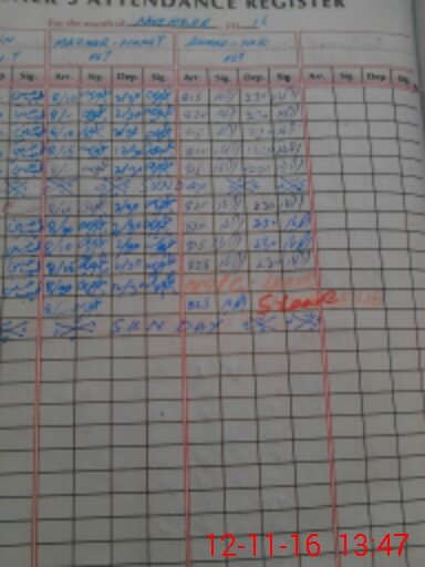| CNIC | Full Name | Designation | R/C | Absence During Last Calender Month |