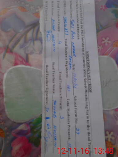 | Attendance Register | Head Teacher | MEA with School | Visit Proof |