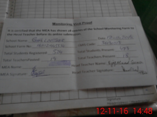 | EMIS Code: 36130013 | Name of School: GHS LOOTHER MULTAN | |||