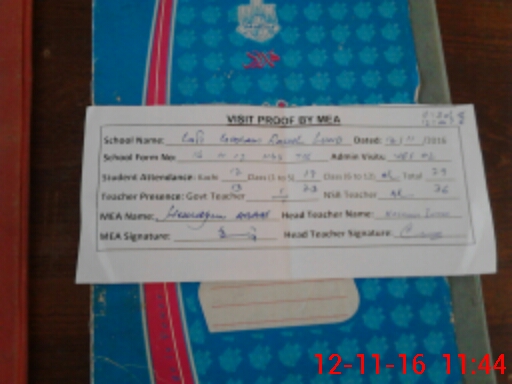 | Attendance Register | Head Teacher | MEA with School | Visit Proof |