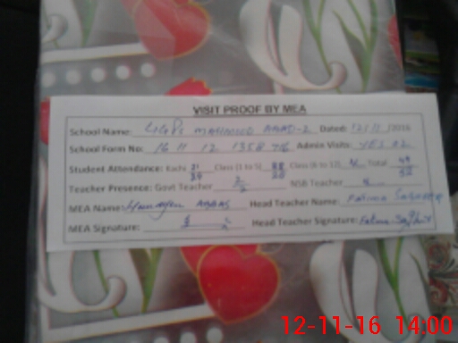 | EMIS Code: 32410256 | Name of School: GGPS MEHMOOD ABAD NO. 2 | |||