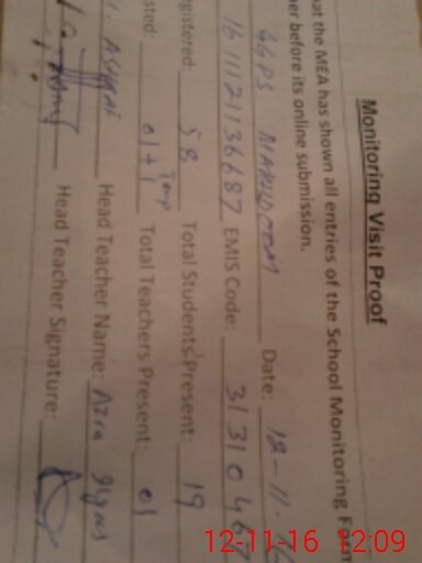| Attendance Register | Head Teacher | MEA with School | Visit Proof |