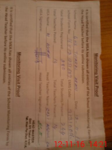 | Attendance Register | Head Teacher | MEA with School | Visit Proof |