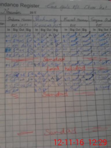 | CNIC | Full Name | Designation | R/C | Absence During Last Calender Month |