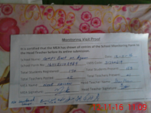 | EMIS Code: 31340619 | Name of School: GMPS BASTI MUHAMMAD AZAM | |||