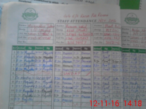 | CNIC | Full Name | Designation | R/C | Absence During Last Calender Month |