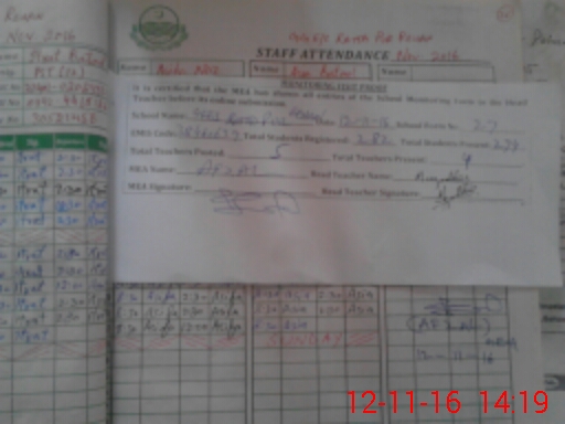 | Attendance Register | Head Teacher | MEA with School | Visit Proof |