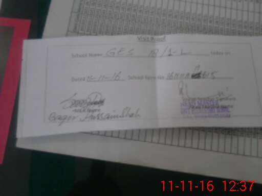 | School Visited by School Health & Nutrition Supervisor (No. of Visits) | 1 | Name1: | Sher Afgan | Name2: | Sher Afgan |